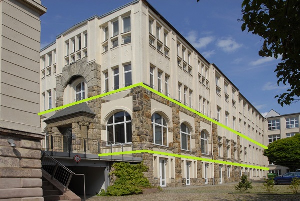 Angeboten wird die komplette untere Etage des Georg-Landgraf-Hauses im Areal "Sonnenbergterrassen". Im Erdgeschoss des repräsentativen Baus kann eine Fläche von insgesamt ca. 631m² angemietet werden. Der großzügige Hauptraum verfügt über ca. 150m² und ist sowohl über das Treppenhaus als auch über eine separate Freitreppe erreichbar. Zwei weitere Räume (24 m² und 31 m²) sowie die Toiletten befinden sich ebenfalls im vorderen Teil der Etage. Im hinteren Bereich finden wir einen weiteren teilbaren Seminar- oder Vortragsraum (ca. 150 m²) und mehrere Büroräume. Die Großfläche kann nach Ihren Bedürfnissen umgestaltet werden. Eine temporäre gastronomische Nutzung ist möglich. Auf dem Gelände können Stellplätze angemietet werden.