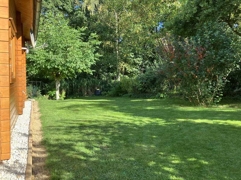 Angeboten wird ein traumhaftes Wochenendgrundstück bebaut mit einem gepflegten Bungalow. Auf dem etwa 530 m² großen Grundstück wurde eine erholsame Idylle geschaffen. Der Bungalow aus Blockbohlen wurde 2004 fachmännisch von einem Zimmerreibetrieb auf einer gegossenen Bodenplatte errichtet. Die Grundfläche beträgt etwa 42 m² incl. der überdachten Terrasse. Im Inneren finden wir einen großzügigen, zentralen Wohnraum mit einer durch einen Tresen abgetrennten Küchenzeile. Vom sich anschließenden Flur sind Bad, Schlafzimmer und ein Abstellraum erreichbar. Weitere Schlafplätze sind vom Wohnbereichaus erreichbar. Auf dem Schafboden können bequem mehrere Personen nächtigen. Wohn- und Küchenbereich haben eine Größe von etwa 18 m², das Schlafzimmer etwa 9 m². In einem Nebengebäude sind zusätzlich etwa 20 m² Platz zum Abstellen oder Lagern vorhanden. Das Grundstück selbst verfügt über einigen Baumbestand sowie Sträucher und eine großzügige Wiese. Zwei Stellplätze sind am Grundstücksrand eingerichtet.
