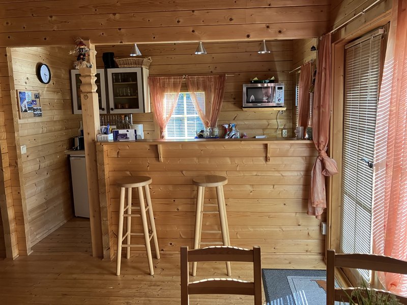Die Blockbohlenhütte eignet sich vor allem zur Nutzung vom Frühjahr bis in den Herbst. Mit Einschränkungen ist eine Nutzung auch im Winter denkbar. Die Heizung erfolgt elektrisch. Wasser und Abwasser (abflusslose Grube) sind über einen regionalen Ver- und Entsorger geregelt.