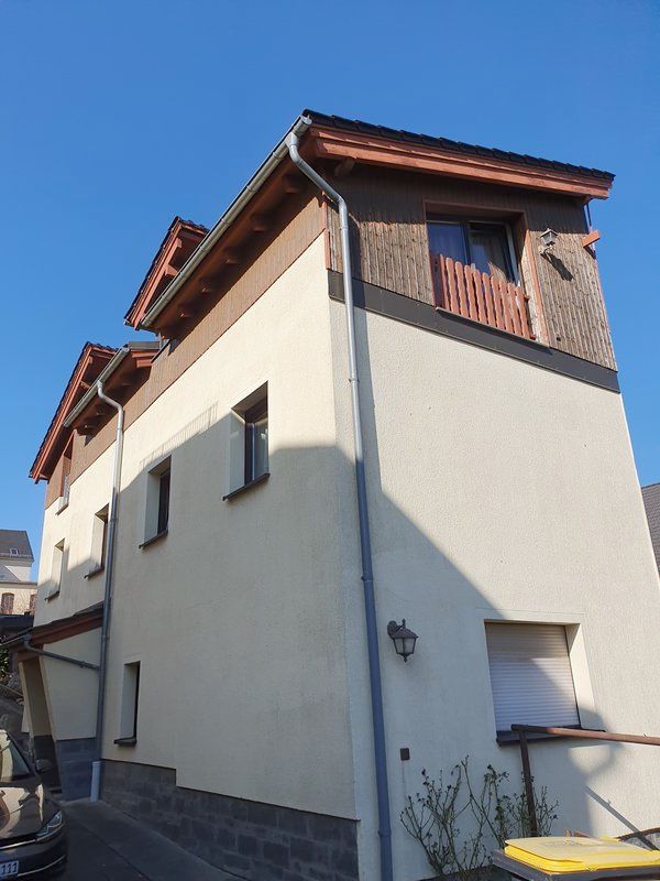 Während das Hauptgebäude 1901 errichtet wurde erfolgte der Bau des Hinterhauses 1957 und befindet sich seitdem im Familienbesitz. Die letzte Sanierung fand 1998/99 statt. Hierbei wurden unter anderem neue Fenster eingebaut, die Heizung ausgetauscht und die Bäder erneuert. Das Hinterhaus wurde aufgestockt und ebenfalls ausgebaut und modernisiert. Eine separate Heizungsanlage (Gas) wurde installiert. Die Dächer wurden bitumengedeckt. In den Wohnräumen ist Teppich oder Laminat verlegt, die Bäder und Küchen sind gefliest.