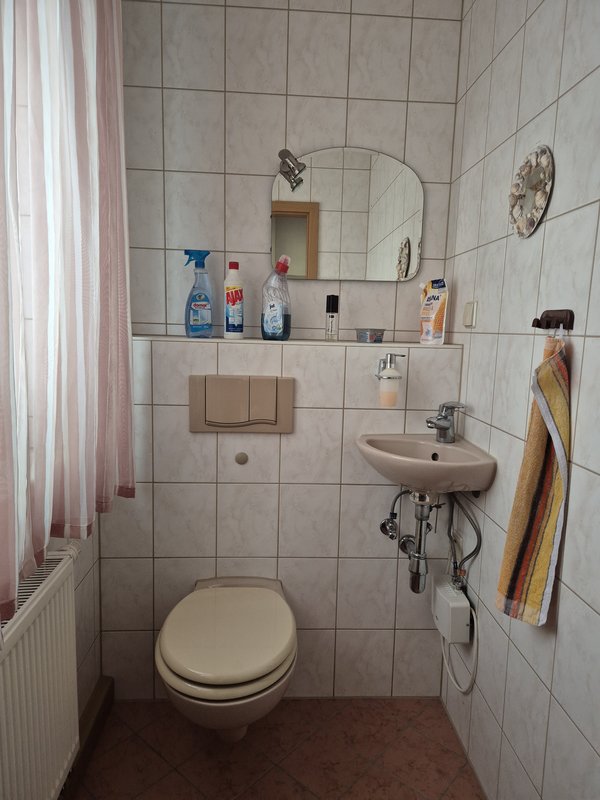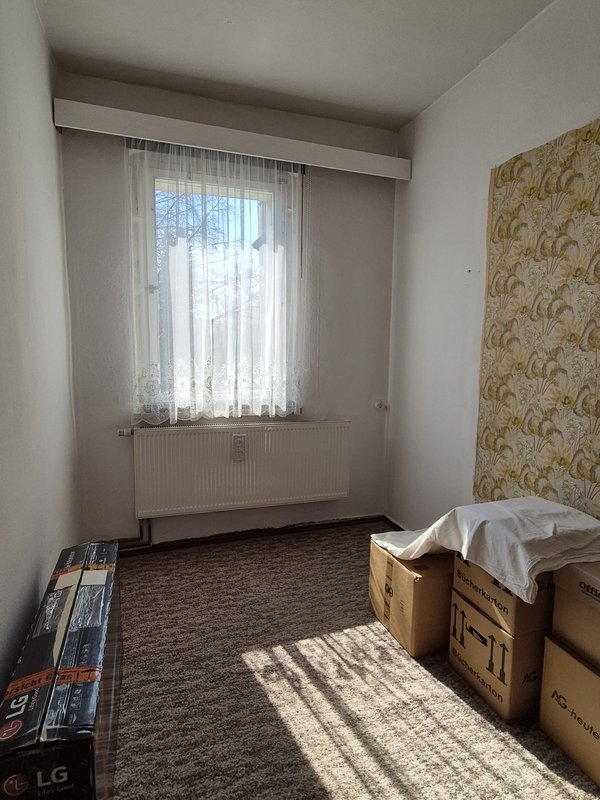 Im OG steht Ihnen eine kleine abgeschlossene Wohneinheit mit drei Zimmern, Küche und Diele mit ca. 63 m² zur Verfügung. Das dazugehörige Bad/WC befindet sich im Seitentrakt/Nebengebäude und ist über das zentrale Treppenhaus begehbar. Ferner befinden sich im DG des Nebengebäudes noch zwei miteinander verbundene Räume mit einer Fläche von ca. 27 m². Derzeit als Abstellräume genutzt, wäre hier auch eine wohnwirtschaftliche Nutzung denkbar. Im EG des Wohnhauses befand sich früher eine Ladeneinheit. Der Rückbau der Schaufenster erfolgte 1994. Dieser Bereich - 2 Zimmer mit ca. 35 m² - könnte heute ebenfalls zum Wohnen genutzt werden. Ferner denkbar wäre hier auch die Öffnung zur Straße hin und eine Nutzung als Garage.