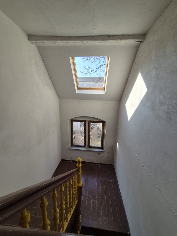 Das ausgebaute DG ist leerstehend und weist eine Fläche von 108 m², ebenfalls mit 5 Zimmern, einem Bad und einer Küche auf.