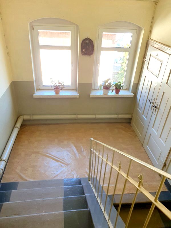 Das Vorderhaus ist ein klassisches Mietshaus mit 3 Etagen. Untergebracht sind hier 4 Wohnungen und eine Gewerbeeinheit mit insgesamt 356 m². Die Sanierung erfolgte schrittweise bis 1999. Da die Instandhaltung laufend erfolgt ist sind die noch notwendigen Investitionen überschaubar.