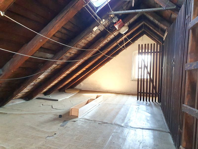 Im Hinterhaus sind auf 3 Etagen etwa 92 m² Wohnfläche vorhanden. 4 Wohnräume mit 2 Bädern sowie Küche und Werkstatt werden ergänzt durch eine Garage im Haus. Zum Gebäude gehört ein kleiner Garten mit einem sanierungsbedürftigen Pool und einem Schuppen.